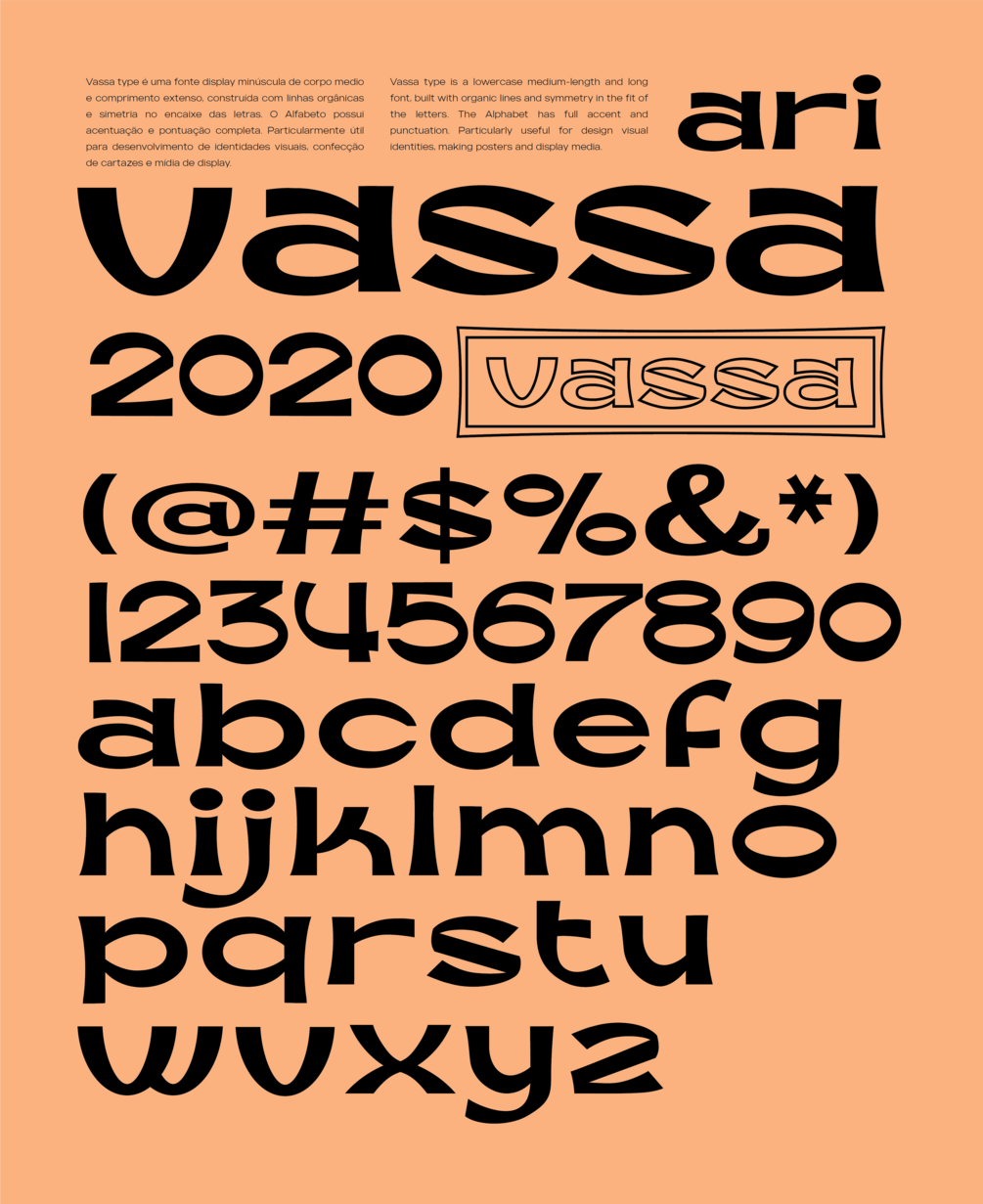 Vassa type is a lowercase medium-length and long font, built with organic lines and symmetry in the fit of the letters. The Alphabet has full accent and punctuation. Particularly useful for design visual identities, making posters and display media.